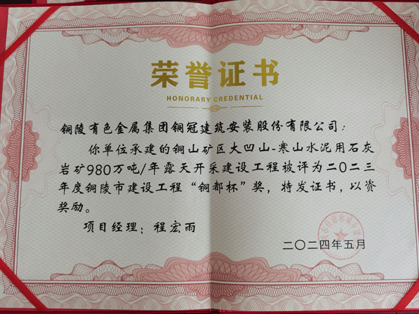 • 二O二三年度銅陵市建設工程“銅都杯”獎
